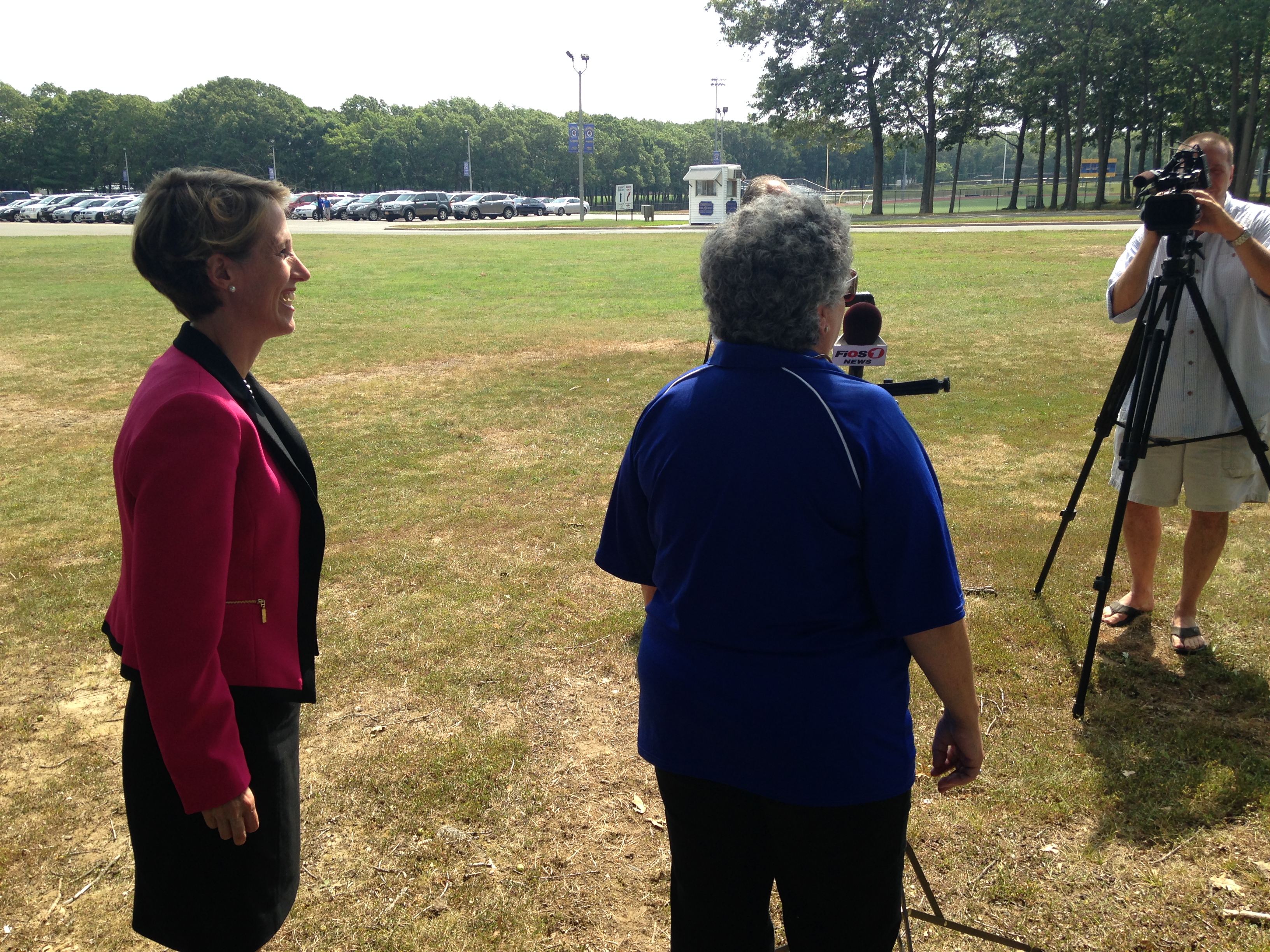 Teachout also tapped Cuomo’s running mate, former Congresswoman Kathy Hochul, on her shoulder. Hochul was also frosty. She never turned around to face Teachout, giving her a steady view of her back.